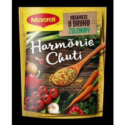MAGGI Harmónia chuti je vyrobená z 8 vybraných druhov sušenej zeleniny unikátnou technológiou granulácie v podobe trojfarebných granuliek s výraznejšou zeleninovou chuťou a atraktívnym vzhľadom. Hodí sa na dochutenie polievok, vývarov, cestovín, ryže, zeleninových pokrmov, na zapekanie i do šalátov. Granulované ochucovadlo so zeleninou.
