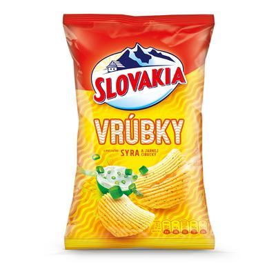 Vychutnajte si intenzívnejší zážitok na Slovakia vrúbkoch. Smažené zemiakové lupienky s príchuťou syra a jarnej cibuľky