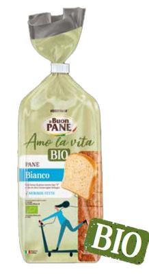 Bio pšeničný chlieb svetlý s extra panenským olivovým olejom 4% a s dextrózou, krájaný. Ošetrené etylalkoholom.
